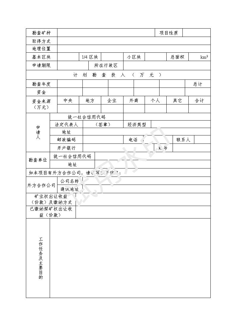 油氣探礦權延續申請登記書模板下載