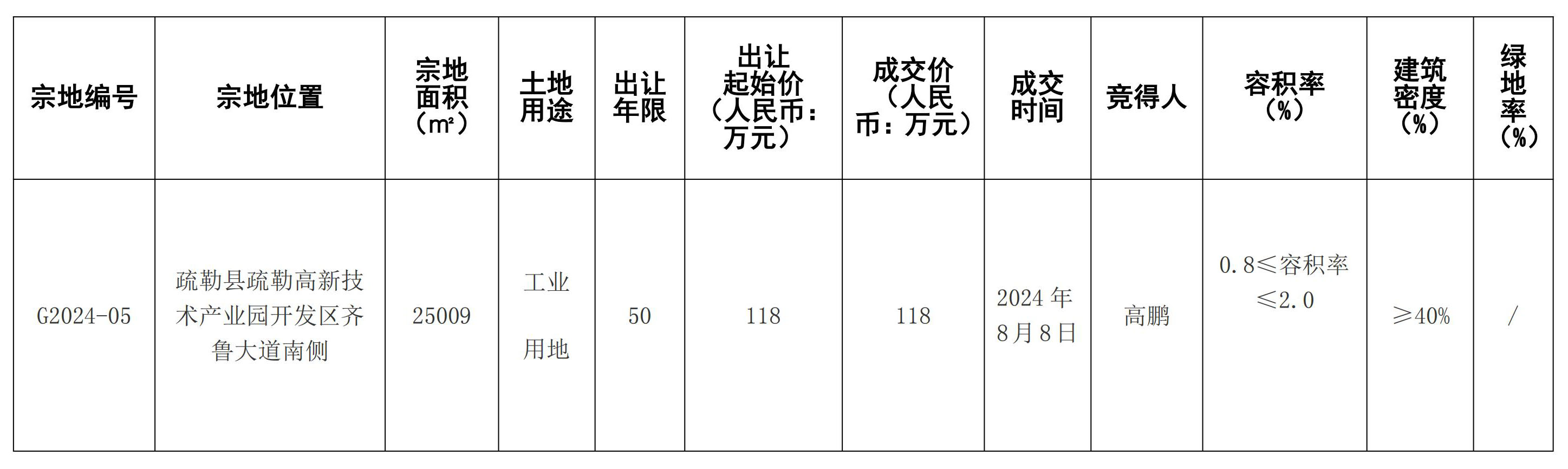 疏勒縣國有建設(shè)用地使用權(quán)掛牌出讓成交結(jié)果公示